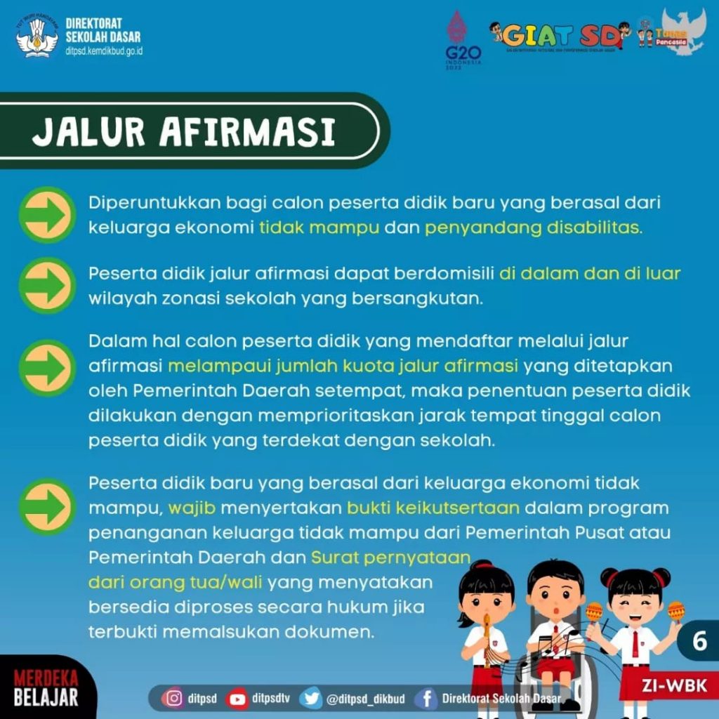 - Peserta didik jalur afirmasi dapat berdomisili di dalam dan di luar wilayah zonasi sekolah yang bersangkutan.